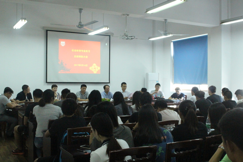 9月14日下午,公司在体育楼301会议室召开2014级社会体育指导与管理专业实习总结表彰大会。公司党总支副书记祁龙祥、副经理姜振、社会体育系主任夏成前、健身企业代表、实习指导老师以及全体2014级社会体育指导与管理专业的员工参加了大会。会议由夏主任主持。
