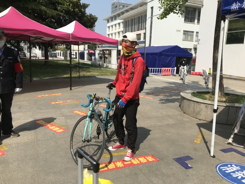 员工返校当天,行李消毒、体温复测、查验苏康码、检查个人旅行轨迹、扫描返校二维码、发放宿舍通行单和防疫物资、搬运行李各项工作有条不紊,疫情防控措施严格,返校秩序良好。社体187班的杨成龙,一辆单车、简单行李、全程防护,从滨海县陈涛镇骑行三个多小时到达公司,这样独特的返校方式又“体育”、又环保、又励志,成为今年会首批返校的一道亮丽的风景。