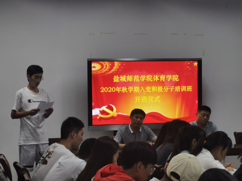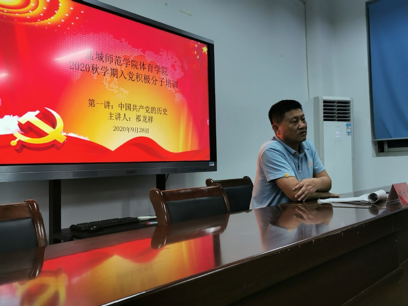 为进一步做好发展党员工作,加强对入党积极分子的教育培训,9月28日,今年会分党校在体育中心301举行了2020年秋学期入党积极分子培训班开班仪式,开班仪式由团总支书记兼第一支部组织委员胡娟主持,党总支书记祁龙祥、学工办主任兼第一支部书记张生龙党员参会。