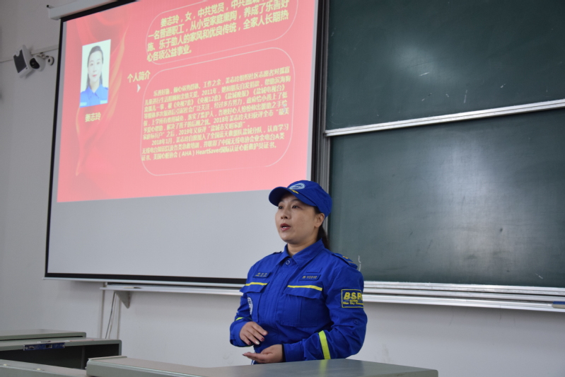 本次信仰公开课邀请到盐城蓝天救援队队员姜志玲担任主讲,她从蓝天救援队成立的背景、理念、工作内容、救援开展情况等方面为同学们讲述了蓝天救援队守护生命的感人故事。无论刮风下雨,无论白天黑夜,每当有紧急救援任务,他们都会第一时间赶赴现场。疫情防控战役打响以来,蓝天救援队自筹资金购买消毒喷雾器、无人机、消毒液等,为阻击疫情尽自己的一份力。活动现场,队员们还向同学们展示了部分装备和使用方法。互动环节同学们纷纷举手提问,现场气氛热烈。活动结束时,公司的同学们为队员们送上献花,向他们表示敬意。