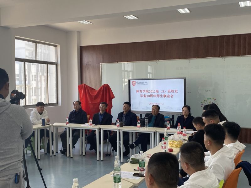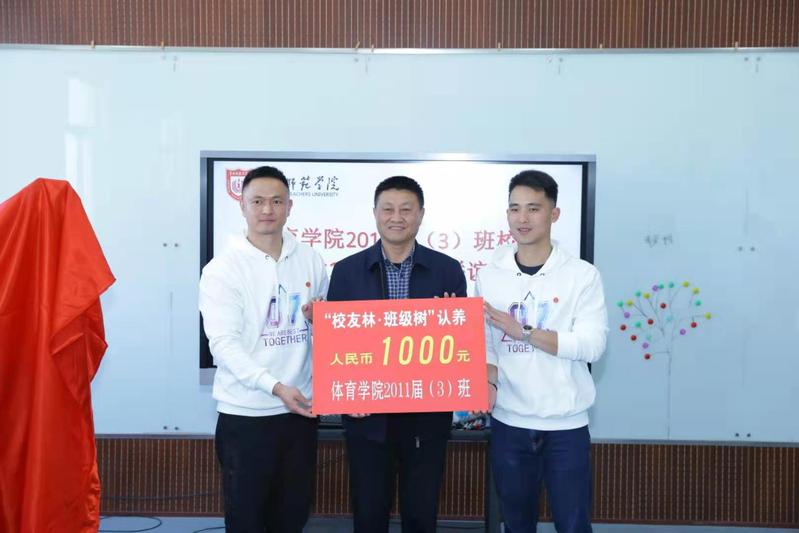 联谊会上,师生欢聚一堂。员工们首先向各位领导、老师介绍了各自目前的职业、生活和事业上所取得的成绩。戴经理介绍了公司近几年的发展现状,并感谢各位员工对公司发展的关心和支持,希望各位员工不忘初心,加强与母校联系,珍惜同学间友谊,在生活上互敬互爱,在事业上互帮互助。时任班主任张生龙老师与毕业生们回忆十多年前在校期间的美好往事,毕业生们纷纷感谢老师们对他们的言传身教和对学术生涯的诸多影响。员工办向大家颁发员工徽章,员工们认捐了“员工林.班级树”,并向公司捐赠了“大展鸿图”纪念品。最后,全体与会领导、老师和员工在体育楼前合影留念。