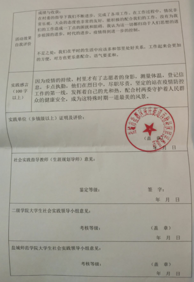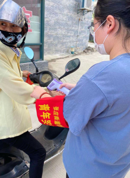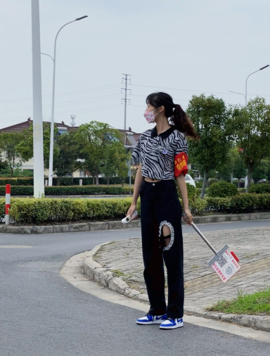 不仅仅是李嘉馨同学,家住盐城市盐都区张庄街道的20(7)班的张楠同学在假期里也为疫情防控做出了自己的贡献。每天“三班倒”,每班4人,早上7点半至晚上11点半,分三个时段在社区轮流值守。张楠同学按照疫情防控要求,严查进出社区人员的健康码和行程码,密切关注国外及国内中高风险区域人员,登记备案,测量体温,核查资料,不畏烈日,尽职尽责,坚守在疫情防控最前沿。