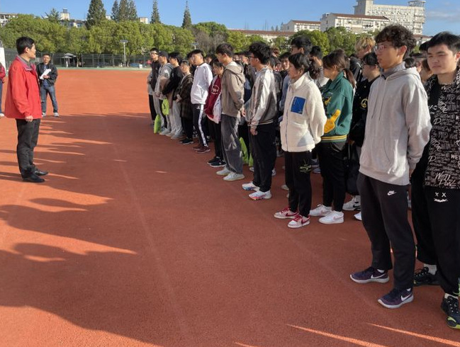 殷鹏老师讲解了本次体测的两个项目及相关标准,向大家说明了体测中的要求和注意事项,他希望同学们在追求好成绩的同时更要注意自身安全。