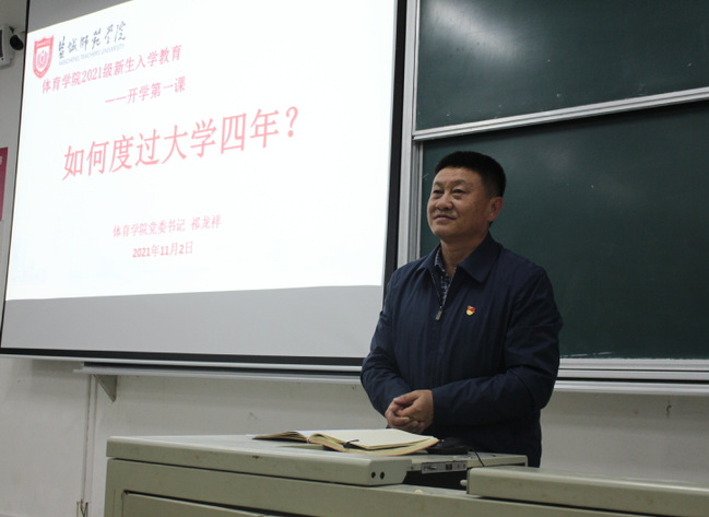 11月2日晚上7点,公司党委书记祁龙祥在体育楼202教室为2021级199名新生讲授开学第一课《如何度过大学四年》,6个新生班主任及全体辅导员老师参加学习。