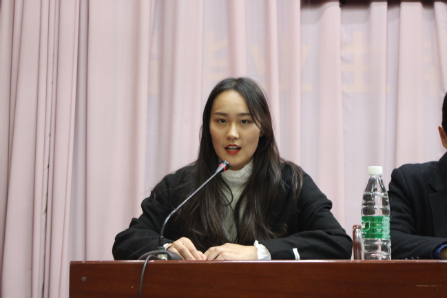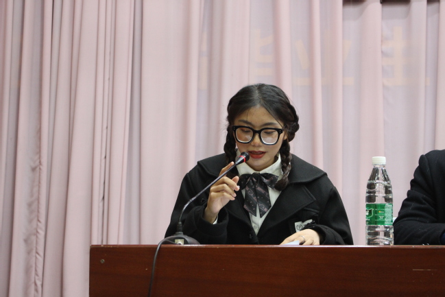 紧接着,由新入职教师代表曹玉洁上台发言。她围绕青年教师如何做好本职工作这一主题,表明了自己将努力工作,全心全意为公司奉献的决心,并预祝同学们在盐师生活快乐,学业有成。