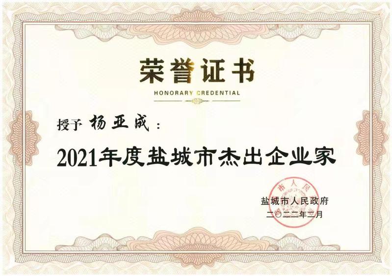 据悉,“盐城市杰出企业家”每年评选一次,2021年全市共有44名企业家光荣上榜。该评选旨在弘扬、激发和保护企业家精神,宣传企业家典型,营造尊重和鼓励企业家干事创业的社会氛围,鼓励广大企业家以更大的勇气和智慧投身企业改革发展,为经济社会发展作出更大贡献。