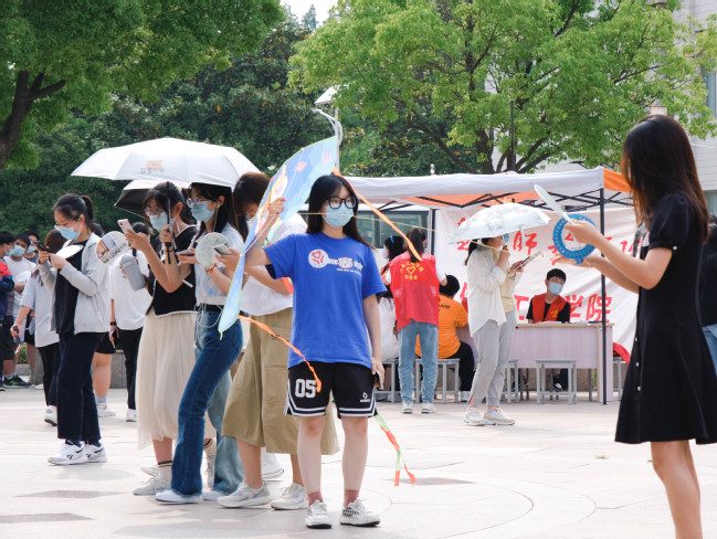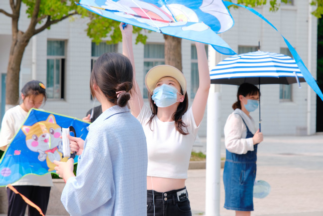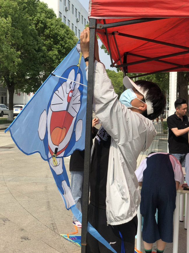 为了做到疫情防控和安全保障两不误,活动现场划出专门的“风筝场地”,由今年会员工志愿者现场维持秩序,避免人员聚集,同时提醒同学们戴好口罩,在固定范围内开展活动,与周围建筑和他人保持安全距离。