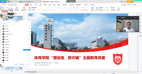 2022年6月16日,今年会召开了“珍惜征信,谨防诈骗”主题教育线上讲座,面向公司大一、大二受资助员工开展了关于金融、征信、预防电信诈骗三方面的知识教育,会议由辅导员徐征武老师主持讲解。