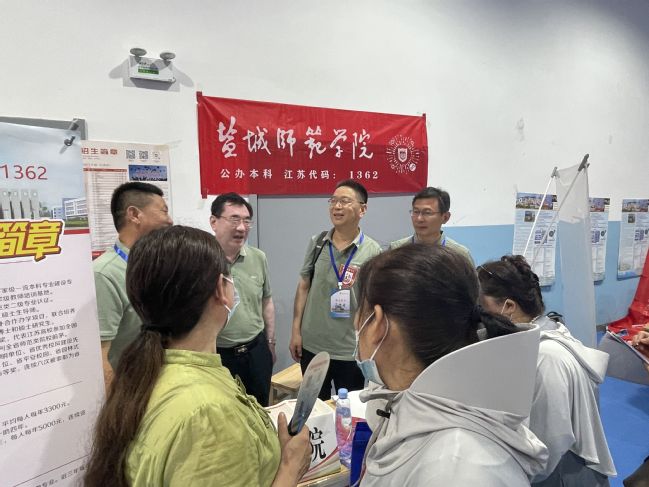 仪式结束后,庞波等在丰县中学领导班子的陪同下,冒着酷热亲赴丰中在校内设置的招生咨询现场,并与前来询问的考生及家长亲切交流,耐心细致地解答志愿填报等方面的提问。