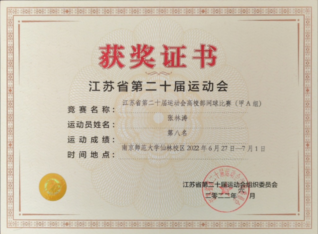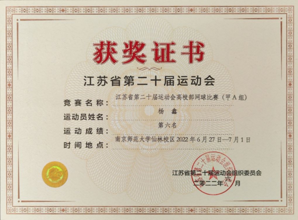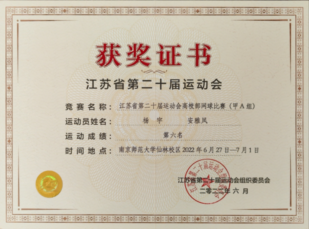 一份耕耘一份收获,在教练孙飞和王锴老师的带领下,公司网球队的7名同学在历经艰辛的备战阶段后,在比赛中充分展现了盐师人不畏强手、敢打敢拼的优良作风。在运动员们的不懈努力下,张林涛同学取得了甲A组(高水平组)男子单打第八名的成绩;杨鑫同学获得了甲A组(高水平组)女子单打第六名的成绩 ;杨宇、安雅凤两名同学斩获了甲A组(高水平组)女子个人赛双打第六名;杨鑫、杨宇、杨星宇、安雅凤等四名同学赢得了女子团体赛的第六名。杨宇、张林涛两名同学还分别获得了“体育道德风尚奖”。