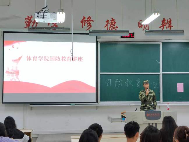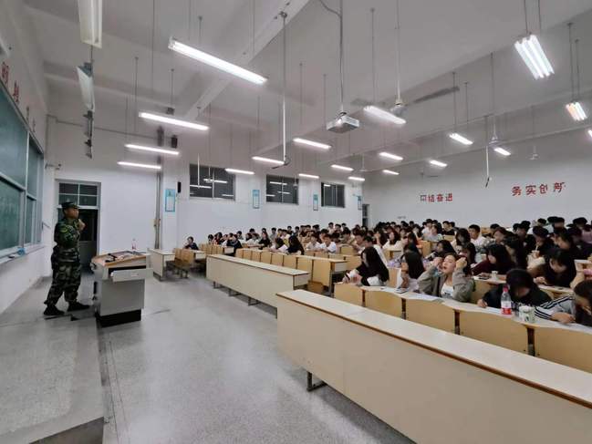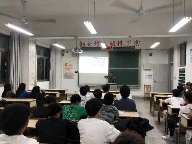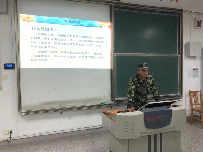 教官们从国防旗帜、国防知识、海陆空军队建设三个方面给同学详细讲解“什么是国防”,让同学们明白国防的重要意义。国防旗帜方面,教官们介绍了我国的国旗、党旗、团旗、队旗、军旗、海陆空军旗及各类徽章,加强同学们对祖国旗帜、徽章的全面认识;国防知识方面,教官们给大家普及了全民国防教育日的由来,指出我国国防实力的强大离不开老一辈革命家毛泽东、周恩来、朱德、贺龙等人民英雄的无私奉献。海陆空军队建设方面,教官们讲到,改革开放后,经过一系列军事建设项目的开展,我国海陆空三军的规模不断扩大,国际地位和国防实力得到了不断提升。讲座的最后播放了9.18事变的相关视频,教官们希望大家了解当时日本在侵略我国时做出的种种反人类行为,告诫同学们不能忘却这段历史。