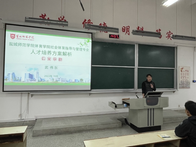 225、226、227三个社体专业的员工在系主任武伟东老师的带领下来到201,武老师讲述了社体专业与其他体育专业的不同之处,并以自身的教学经历告诉同学们应该如何学好、学精这门专业以及顺利毕业应当具备的条件。同学们竖耳倾听,纷纷拿起手机记录下ppt中的内容,对接下来的老员工活满怀憧憬与信心。