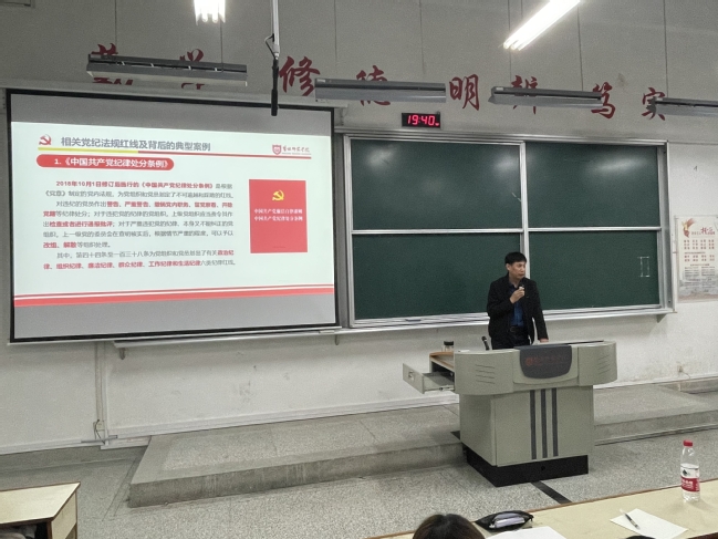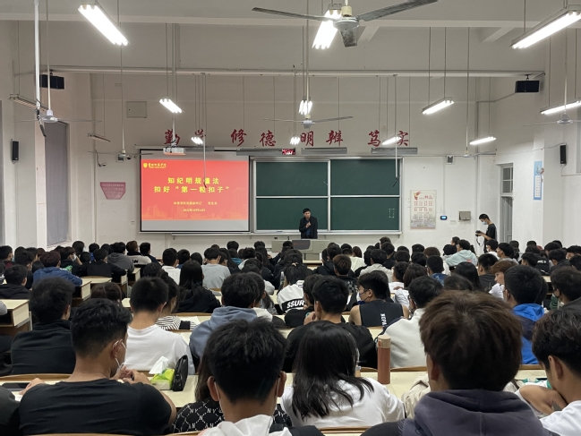 新生入学教育,是同学们开启老员工涯的重要起点,是引领员工“扣好人生第一粒扣子”的重要环节,是做好员工思想政治工作的重要内容。为了能让2022级新同学尽快适应公司生活,熟悉公司的各项管理规定,同时进一步强化同学们的法纪意识、廉洁意识,营造风清气正的校园氛围,校纪委在全校组织开展了“知纪明规懂法 扣好‘第一粒扣子’”党纪法规宣传教育讲座。10月14日晚七点半,公司党委副书记张生龙在体育楼202阶梯教室主讲了本次主题讲座。公司2022级全体新生、辅导员参加了本次讲座。