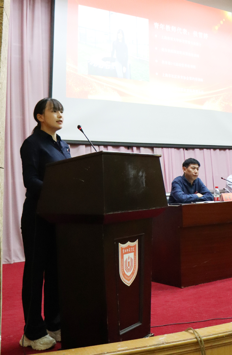 张兵经理发表致辞,他为新生介绍了公司的概况,并围绕“自立、自由、自觉”三个方面,希望同学们时刻牢记体育人的准则,心怀梦想,战胜自己,克服困难,赢得未来。