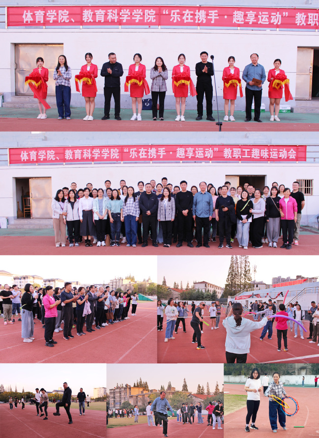 为贯彻落实党的二十大精神,深化“快乐工作,健康生活”的理念,凝聚教职工队伍,丰富广大教师文化生活,增强体育锻炼意识,11月1日下午,今年会与教育科学公司在通榆校区北园田径场联合举办了2023年“乐在携手·趣享运动”教职工趣味运动会。今年会与教育科学公司领导班子出席剪彩仪式并参加了运动会,双方公司教职工运动员齐聚田径场,共享运动带来的激情与欢乐。