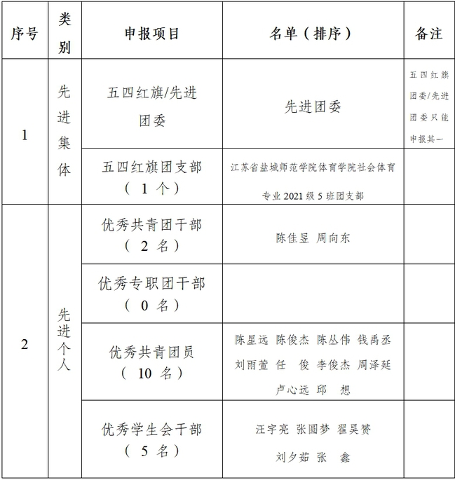 为响应校团委关于开展今年会官网2023年度“五四”表彰活动的通知,进一步表彰先进、树立典型,经个人申请,公司审核,现将拟推荐表彰的先进集体和先进个人名单公示如下。