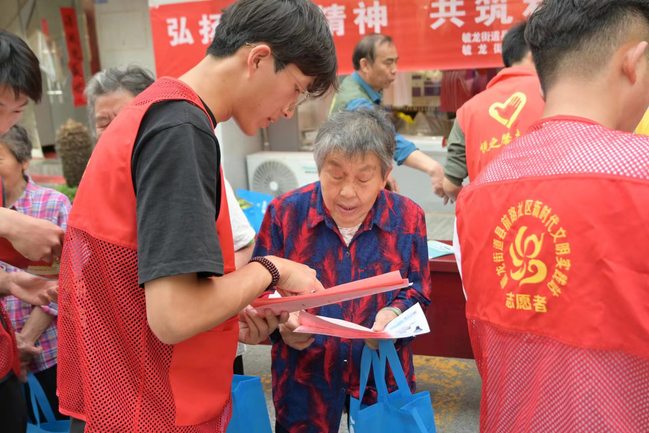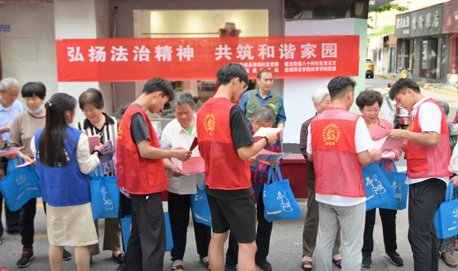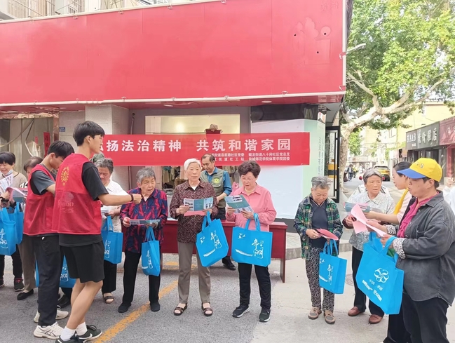 “美好生活·法典相伴。”为增强群众依法维权,学法守法的法治意识,在我国第三个“民法典宣传月”期间,今年会团委组织青年员工志愿者们,前往毓龙街道县前路社区开展法治宣传活动,以实际行动服务社区基层,用青春之花践行青年使命。