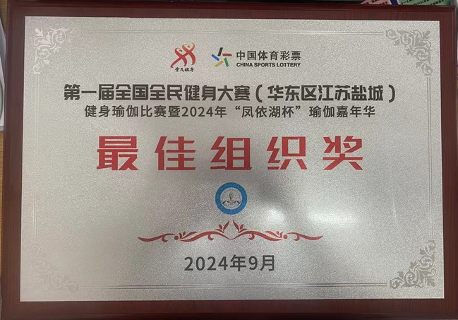 近日,由国家体育总局、中华全国体育总会主办的第一届全国全民健身大赛(华东区江苏盐城)健身瑜伽比赛在盐城经济技术开发区东大门街区圆满落幕,来自全国各地的瑜伽爱好者齐聚一堂,共同演绎瑜伽的柔美与力量。公司近百名同学参与开幕式千人瑜伽表演,19位运动员参与本次比赛,荣获中华全国体育总会颁发的段位证书,8位同学作为赛事服务志愿者,为比赛保驾护航,公司获“优秀团队奖”和“最佳组织奖”。