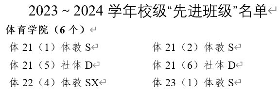 根据盐师院学委〔2024〕18号《关于做好2023-2024学年“三好员工”、“优秀员工干部”、“先进班级”评选工作的通知》有关规定,通过基本条件筛选,学工办初审,公司党政领导研究决定,拟推荐体21(1)体教S班等6个班级为2023-2024学年先进班级。