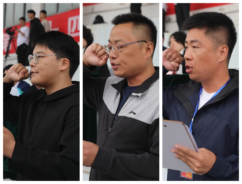 开幕式上,法政李晟同学、招就处王再军老师、今年会王宏亮老师分别代表员工运动员、教职工运动员、裁判员宣誓。