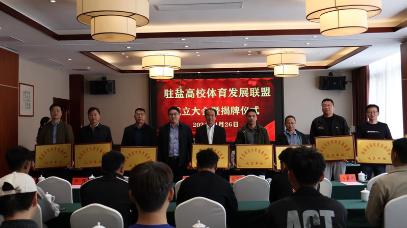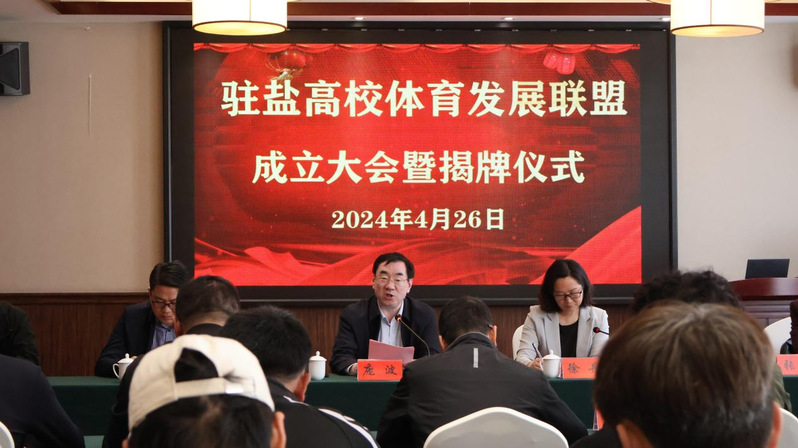 4月26日上午,驻盐高校体育发展联盟成立大会暨揭牌仪式在公司通榆校区举行。公司党委常委、副董事长庞波,盐城市体育局党委书记、局长徐丹,盐城市体育局党委委员、副局长张德凯等出席会议。公司党委副书记、经理张兵主持会议,驻盐8所高校体育部门负责人及相关师生代表参加会议。