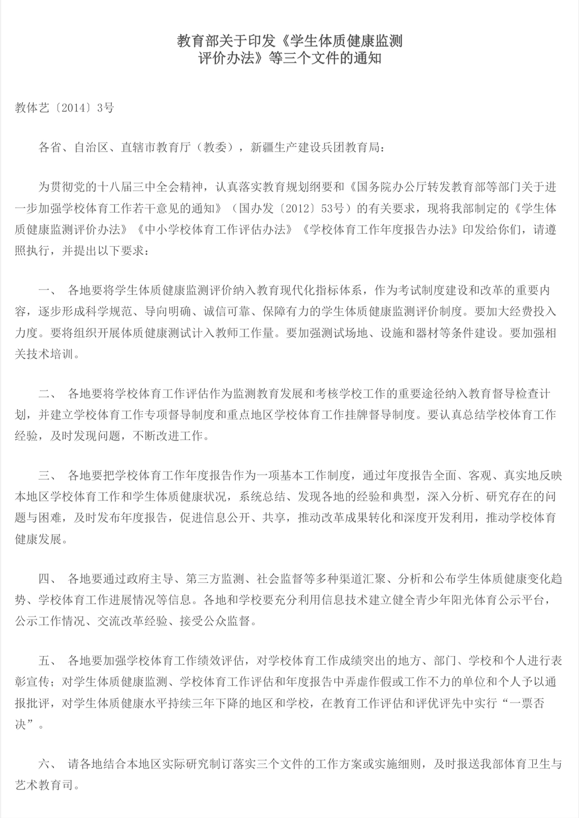 教育部关于印发《员工体质健康监测评价办法》等三个文件的通知