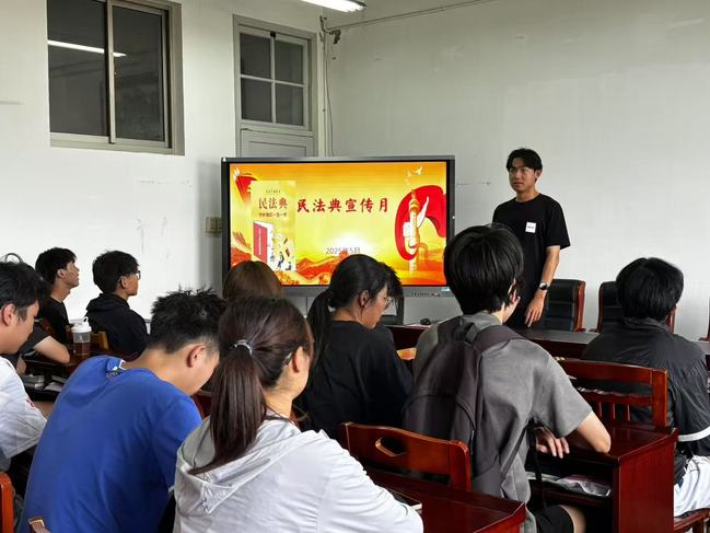 为深入贯彻习近平法治思想,落实民法典普法工作要求,公司以“美好生活•民法典相伴”为主题,组织开展了第五个“民法典宣传月”主题团日活动。各班团支书作为宣讲主力,带领同学们学习民法典,推动法治精神在校园落地生根。